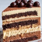- Decorate and Serve: Diagonally place a sheet of parchment paper over half of the cake’s top, gently press it to adhere to the frosting. Using a fine-mesh sieve, dust unsweetened cocoa powder over the exposed half of the cake. Carefully remove parchment to reveal a sharp, clean line dividing the cocoa-dusted side and plain frosting side. Decorate the plain side with chocolate-covered espresso beans. Serve the cake chilled.