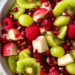 A delightful and easy-to-make Christmas fruit salad featuring a colorful mix of fresh grapes, apples, pomegranate, kiwis, and berries, lightly sweetened with honey and lime juice. Perfect for festive gatherings or a healthy holiday treat.