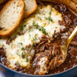 This French Onion Pot Roast combines tender, slow-braised chuck roast with rich caramelized onions and savory herbs, topped with melted Gruyere cheese. Perfect for a comforting dinner, this dish pairs beautifully with mashed potatoes or toasted baguette slices.