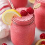 For parties, I’ve served this Frozen Raspberry Lemonade in mason jars with colorful paper straws and a sprig of mint tucked into the rim. For a special brunch, try serving alongside mini lemon tarts for an all-lemon theme that guests love.