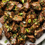 Finish your steak bites with fresh sliced green onions, a sprinkle of chopped parsley for color and brightness, or even a touch of flaky sea salt to enhance the buttery garlic flavors. A few red pepper flakes on top add a nice pop of spicy heat if you like it a bit bolder.