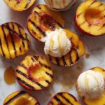 This quick and delightful dessert features ripe grilled peaches and nectarines, caramelized to perfection on a hot grill. Served with creamy vanilla ice cream, a drizzle of honey, and a sprinkle of sea salt, it’s a perfect blend of sweet, smoky, and refreshing flavors.