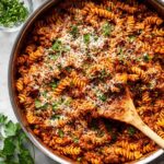 This hearty Ground Beef Pasta recipe features lean ground beef simmered with aromatic garlic, onions, and Italian seasonings in a rich tomato and beef broth sauce. The pasta cooks right in the sauce, absorbing all the delicious flavors, and finishes with a creamy touch of parmesan cheese and optional Greek yogurt for a luscious texture. A comforting and satisfying meal perfect for busy weeknights.