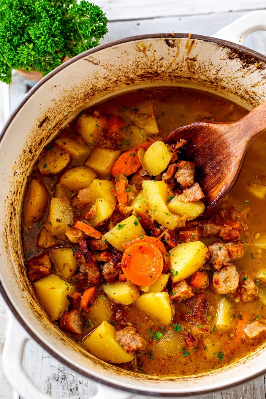 - Layering the Ingredients: For a classic touch, try layering rather than mixing everything. I find this method creates beautiful flavor pockets—bacon at the bottom, then sausages, onions, and potatoes layered on top, all gently braised together.