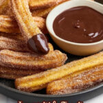 This homemade churros recipe guides you through making crispy, golden fried churros coated in cinnamon sugar, served with a rich and creamy dark chocolate dipping sauce for an irresistible treat.