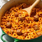 This homemade Spaghettios recipe features tender mini meatballs cooked in a flavorful tomato sauce with Anellini pasta, all made in one pot for easy preparation and cleanup. Perfect for a comforting meal reminiscent of the classic canned Spaghettios but made fresh with wholesome ingredients.