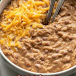 I love topping these refried beans with fresh diced onions, a sprinkle of crumbly cotija cheese, and a few spoonfuls of chopped cilantro. A squeeze of lime brightens everything brilliantly. If you want a touch of heat, sliced pickled jalapeños are a killer garnish too.