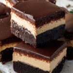 Decadent Irish Cream Frosted Brownies featuring rich chocolate brownies topped with a creamy Irish Cream frosting and a smooth ganache drizzle for an indulgent treat perfect for any occasion.