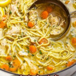 This Lemon Chicken Soup is a flavorful and comforting dish featuring tender seared chicken, fresh lemon juice, aromatic herbs, and Parmesan cheese. The soup is simmered to perfection with a blend of vegetables, white wine, and seasonings, served with angel hair pasta for a delicious, hearty meal.