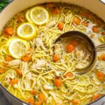 This Lemon Chicken Soup is a flavorful and comforting dish featuring tender seared chicken, fresh lemon juice, aromatic herbs, and Parmesan cheese. The soup is simmered to perfection with a blend of vegetables, white wine, and seasonings, served with angel hair pasta for a delicious, hearty meal.