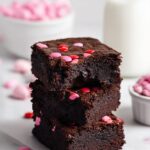 For parties, I sometimes cut these into mini bite-sized squares and arrange them on a platter with colorful sprinkles and edible flowers — it makes a festive centerpiece. Layering slices with alternating whipped cream and chocolate sauce turns them into a decadent brownie trifle as well!
