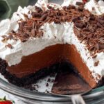 Mississippi Mud Pie is a decadent layered dessert featuring a chocolate cookie crust, fudgy brownie layer, rich chocolate pudding, and a fluffy whipped cream topping, perfect for chocolate lovers seeking an indulgent treat.