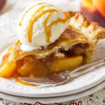 This easy peach pie features a gooey, fresh peach filling and a perfectly flaky, buttery crust. Topped with a scoop of vanilla ice cream, it's an irresistible classic dessert that impresses every time.