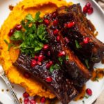 - Glaze the ribs: Once the ribs are hot and cooked through, immediately drizzle balsamic glaze over them. Optionally, garnish with fresh pomegranate arils for a burst of color and flavor. Serve hot alongside your favorite side dishes and enjoy.