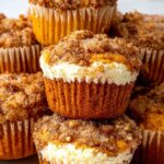 A delicious recipe for Pumpkin Cheesecake Muffins featuring a creamy cream cheese filling, spiced pumpkin batter, and a crunchy pecan streusel topping. These moist muffins are perfect for fall baking and make a delightful treat for breakfast or dessert.