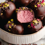These Raspberry Dark Chocolate Truffles are creamy white chocolate ganache infused with freeze-dried raspberry powder, coated in rich dark chocolate. They offer a vivid pink, smooth texture with a tangy berry flavor and make an elegant, delicious treat for any occasion.