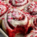 These Red Velvet Cinnamon Rolls From Scratch combine the rich flavors of classic cinnamon rolls with a vibrant red velvet twist. Made with a tender dough enriched by a tangzhong starter and filled with a spiced cinnamon-cocoa mixture, these rolls are topped with a luscious cream cheese frosting, perfect for an indulgent dessert or special breakfast treat.