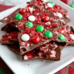 Delightfully festive Christmas Bark featuring creamy milk chocolate, crunchy red velvet cookie pieces, and colorful mint M&Ms. A quick and easy no-bake treat perfect for holiday celebrations.