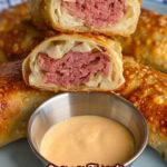 These Reuben Egg Rolls are a delicious twist on the classic Reuben sandwich, blending corned beef, Swiss cheese, and sauerkraut wrapped in crispy egg roll wrappers. Perfectly golden and served with Thousand Island dressing, they make for a tasty appetizer or snack that can be air fried, fried on the stovetop, or baked in the oven.