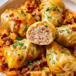 - Form Cabbage Rolls: Place about ¼ cup of the meat mixture onto each cabbage leaf. Roll up, tucking in the sides tightly to enclose the filling. Repeat with all remaining leaves and filling.