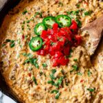 One fun way I’ve presented this dip is baked in a hollowed-out bread bowl, garnished with chopped jalapeños and extra shredded cheese on top, then broiled for a minute so it bubbles and browns slightly. It makes an eye-catching centerpiece at parties and keeps the dip warm longer!