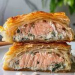 This Spinach Feta Salmon in Phyllo is a delicious and elegant dish featuring tender salmon fillets wrapped in crispy, buttery phyllo dough filled with a creamy spinach and feta mixture. Perfect for a sophisticated dinner or special occasion, it balances rich flavors with a delightful flaky texture.