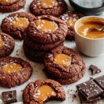 Delight in these Salted Caramel Brownie Cookies featuring a rich combination of dark chocolate, buttery brownie batter, and a gooey caramel center topped with flaky sea salt for the perfect sweet and salty treat.