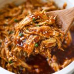 - Combine and serve: Return the shredded chicken to the slow cooker and pour the thickened sauce over it. Stir gently to coat the chicken well. Serve the honey teriyaki chicken hot over steamed rice and garnish with sliced green onions and sesame seeds if desired.