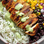 This Southwest Chicken Rice Bowl recipe features juicy grilled chicken marinated in a flavorful blend, paired with a vibrant black bean and corn salsa and a creamy cilantro lime dressing. Served over fluffy rice, this dish offers a delicious and balanced meal with a perfect mix of fresh, tangy, and savory flavors.