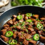 Spicy Cajun Steak Bites are tender, flavorful chunks of strip steak seasoned with a bold blend of Cajun spices, seared to perfection in a hot skillet with garlic, jalapeños, and butter for a rich, spicy finish. Perfect as a main course, these steak bites deliver intense flavor and a delightful char.