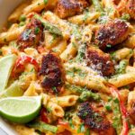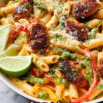 - Garnish and serve: Serve the pasta garnished with freshly grated Parmesan, chopped fresh parsley or cilantro, and an extra squeeze of lime juice if desired.