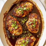- Rest and Serve. Remove the chicken from the oven and let it rest for about 5 minutes. This resting time allows the juices to redistribute. Garnish optionally with chopped green onion and fresh parsley. Serve warm with your favorite side dishes like rice, slaw, or roasted vegetables to soak up the delicious sauce.