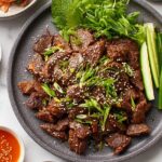 - Serve: Arrange the cooked bulgogi on a serving plate and garnish with thinly sliced green onions and toasted sesame seeds. Serve immediately for the best flavor and texture.