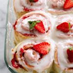 - Frost and serve: Spread the frosting over the warm rolls. Optionally, garnish with fresh strawberry slices. Serve warm and enjoy.