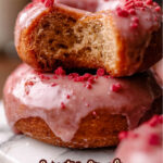 Once cooled, store your leftover donuts in a container with the lid loosely placed on top. This allows excess moisture to escape and helps keep the donuts fresh and soft for up to 2 days. Keeping the glaze on will preserve their beautiful strawberry shine.
