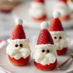 Delightfully festive Strawberry Santas with a creamy vanilla cream cheese frosting, perfect for holiday gatherings or a fun dessert. These adorable treats use fresh strawberries, a sweet cream cheese mixture, and mini chocolate chips to create charming Santa faces.