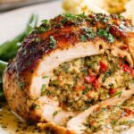 For special occasions, I’ve served these stuffed breasts sliced on a platter, fanned out with a drizzle of homemade garlic butter on top. Garnishing with microgreens or edible flowers adds a lovely restaurant-style touch that’s sure to impress guests.