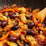 - Finish and Serve: Remove the skillet from the oven. Top the chicken cacciatore with pitted Kalamata olives and garnish with freshly chopped parsley. Serve hot over noodles, rice, or polenta.