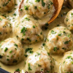 Delicious and tender chicken meatballs baked to perfection and served with a rich, flavorful homemade gravy sauce. Perfect as a main course paired with mashed potatoes and roasted green beans, this recipe combines ground chicken and pork with fresh herbs and spices for a satisfying comfort meal.