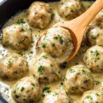 Delicious and tender chicken meatballs baked to perfection and served with a rich, flavorful homemade gravy sauce. Perfect as a main course paired with mashed potatoes and roasted green beans, this recipe combines ground chicken and pork with fresh herbs and spices for a satisfying comfort meal.