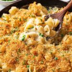 - Top and Bake: Evenly sprinkle the prepared panko breadcrumb topping over the casserole mixture in the skillet. Place the skillet in the preheated oven and bake for 25 minutes until the casserole is bubbly and the topping is golden brown.