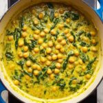 Turmeric Rice with Chickpeas is a flavorful and nutritious Mediterranean-inspired dish featuring sautéed leeks, garlic, turmeric, and spinach cooked with basmati rice and chickpeas in vegetable broth. This vibrant one-pot meal is finished with fresh lemon juice and creamy Greek yogurt, making it perfect for a healthy lunch or dinner option that is protein-rich and packed with vitamins.