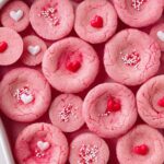 Celebrate love with these delightful Valentine’s Day Cookie Cups featuring a soft, chewy sugar cookie base filled with a sweet Hershey’s Hug surprise and topped with decorative sprinkles. Perfect for gifting or sharing, these bite-sized treats are easy to make and irresistibly delicious.