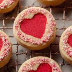 Valentine’s Slice and Bake Heart Cookies are charming, buttery treats perfect for celebrating love. These festive cookies feature a delicate vanilla-flavored dough with a vibrant pink and red heart center, surrounded by sprinkles for added texture and color. The dough is carefully chilled to make thin, uniform cookies that bake to a light golden perfection, ideal for gift-giving or sharing at parties.