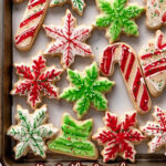 Use your favorite cookie cutters to press out shapes, then carefully transfer them to parchment-lined trays. Bake at 350°F (180°C) for about 10 minutes—rotating the trays halfway through helps them bake evenly. Watch for a pale golden color with edges just turning – that’s your cue to take them out. Let the cookies cool completely on the tray to finish baking and firm up.