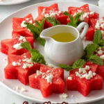 A refreshing and festive Watermelon, Feta and Mint Christmas Wreath Salad featuring chilled watermelon triangles arranged with fresh mint leaves and sprinkled with crumbled Greek feta cheese, drizzled with a zesty lime-honey dressing.