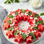 - Arrange the Wreath: On a large platter, arrange the watermelon triangles around the perimeter, interspersing fresh mint leaves as you go. Add the watermelon stars on top.